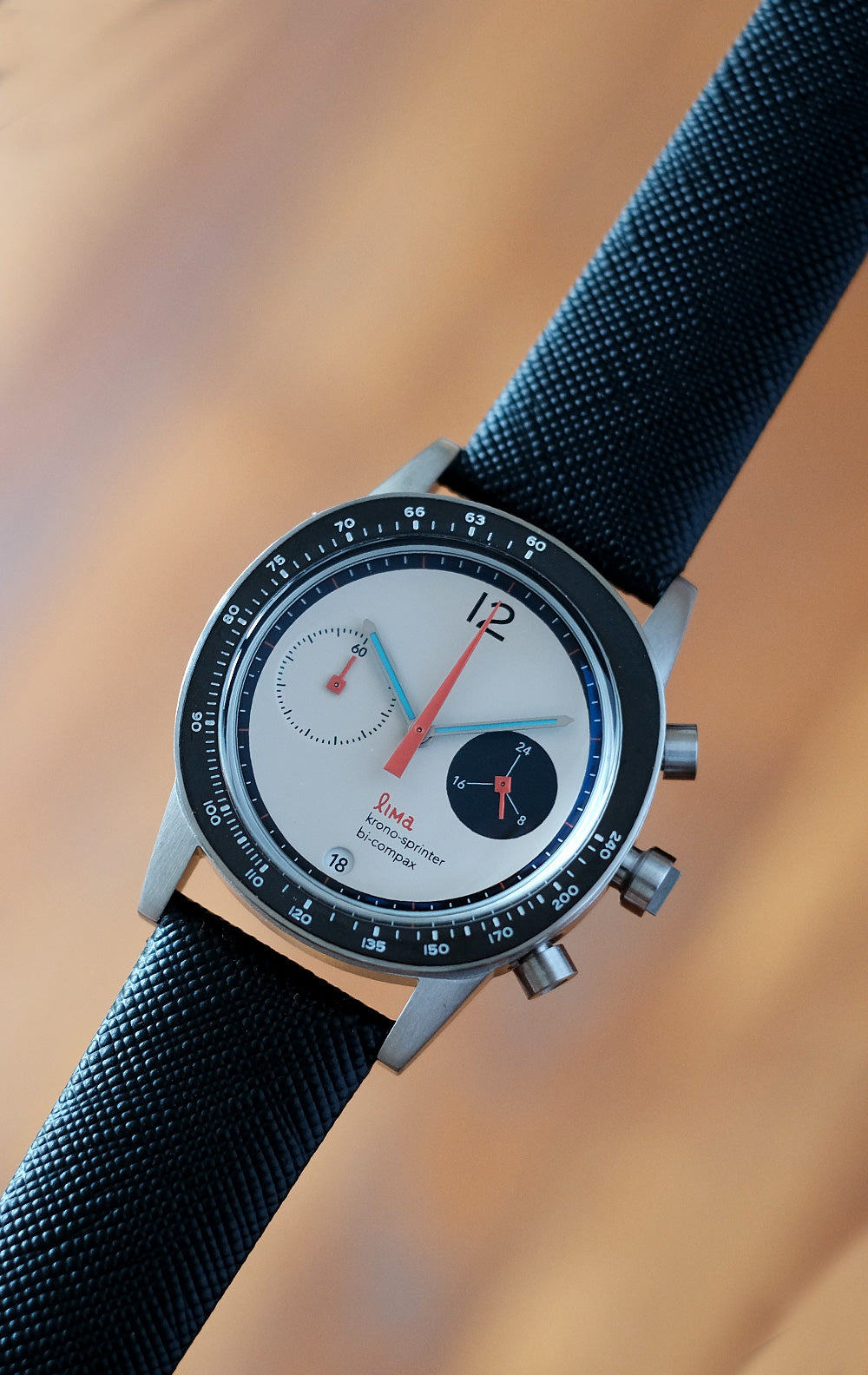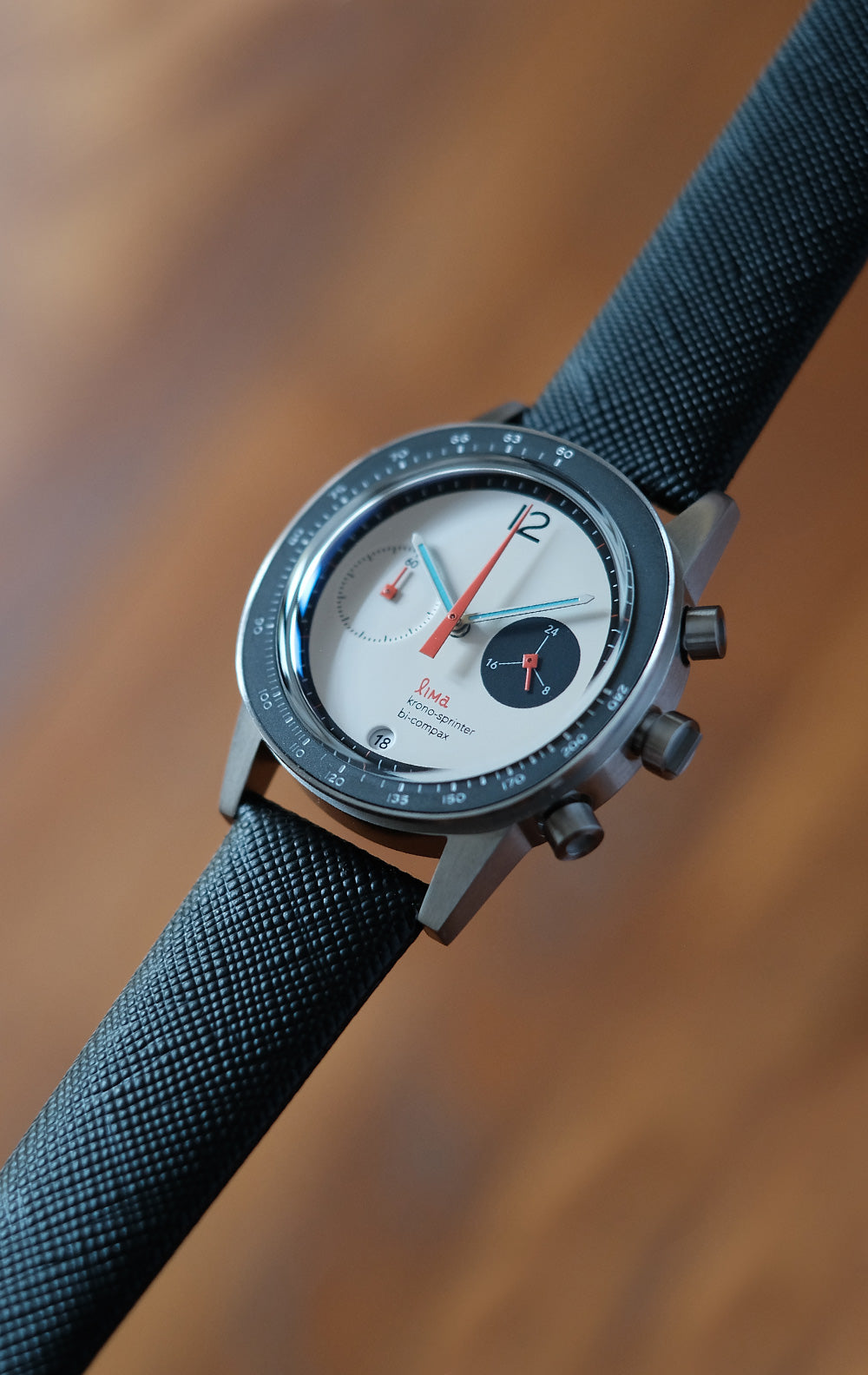 Lima Kronosprinter. Inspired by the simple design of Bauhaus and contemporary sophistication of Dieter Rams design style, comes a chronograph watch that has both modern and vintage flair. With its unique squarish circle in which we call Squircle, Lima Kronosprinter is for sure a one unique timepiece that stands out among the rest.