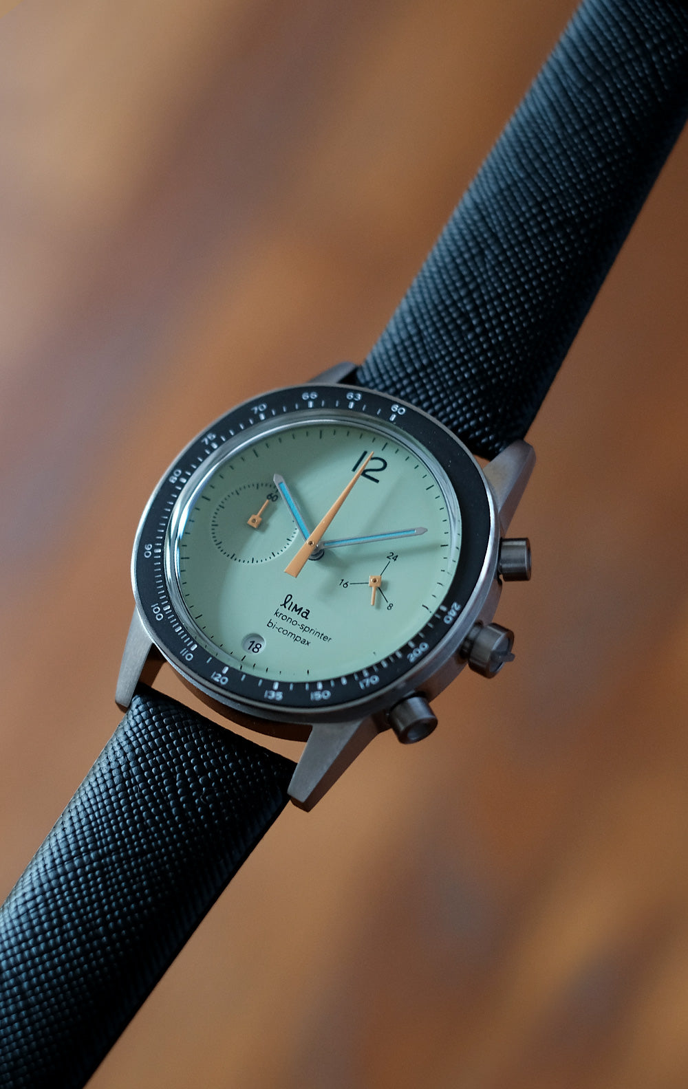 Lima Kronosprinter. Inspired by the simple design of Bauhaus and contemporary sophistication of Dieter Rams design style, comes a chronograph watch that has both modern and vintage flair. With its unique squarish circle in which we call Squircle, Lima Kronosprinter is for sure a one unique timepiece that stands out among the rest.